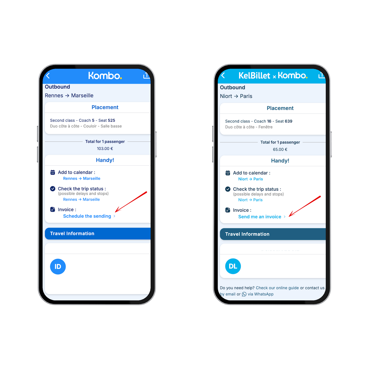 If your trip has not yet taken place (see the image on the left), you can schedule the invoice to be sent so you don’t forget ☝️ Simply click on “Schedule the sending” in the after-sales section of the relevant trip.