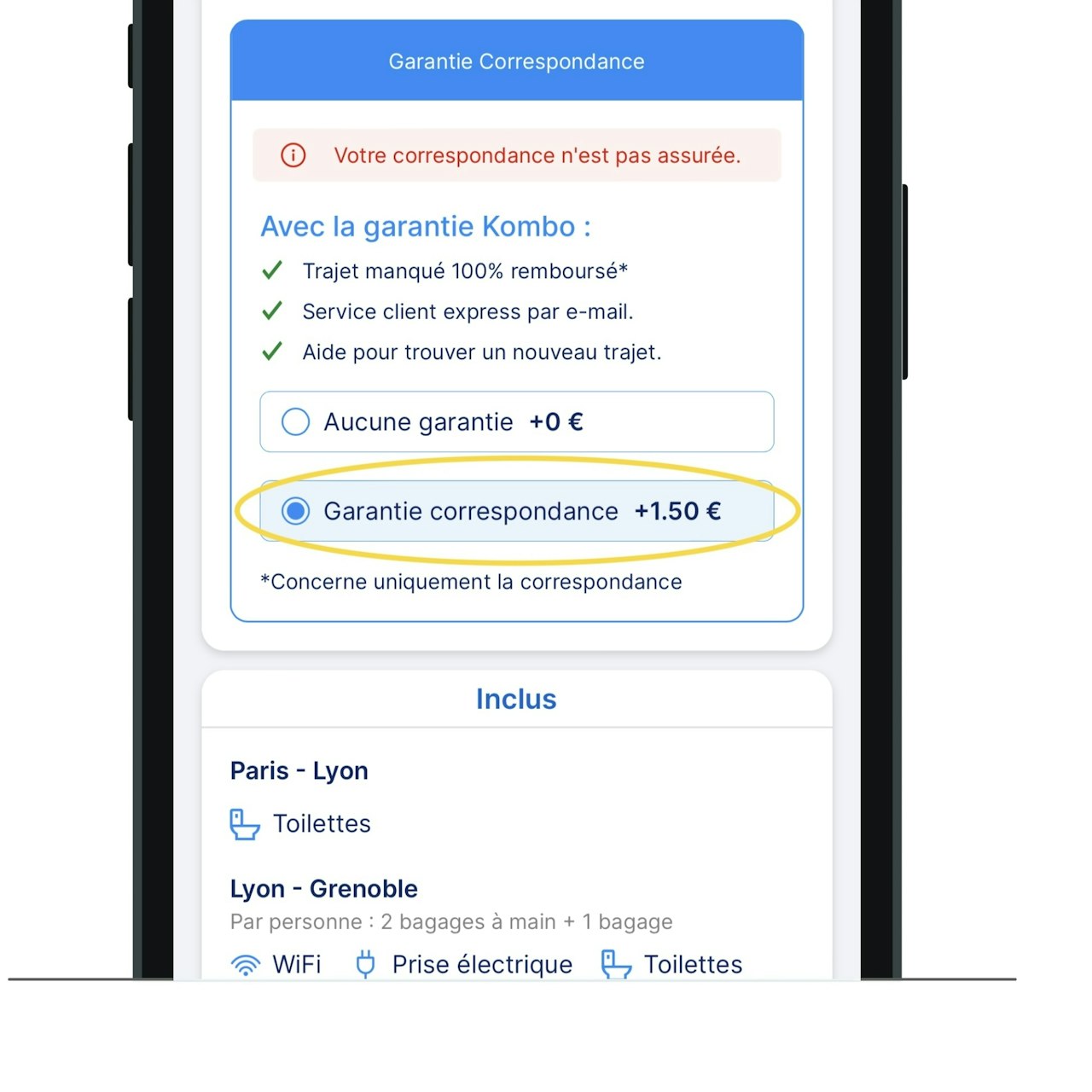 ⏰ However, if the first journey is delayed and you are unable to take the second, you will need to buy a new ticket. In this case, we cannot be held responsible: this is what we mean by "not guaranteeing a connection".