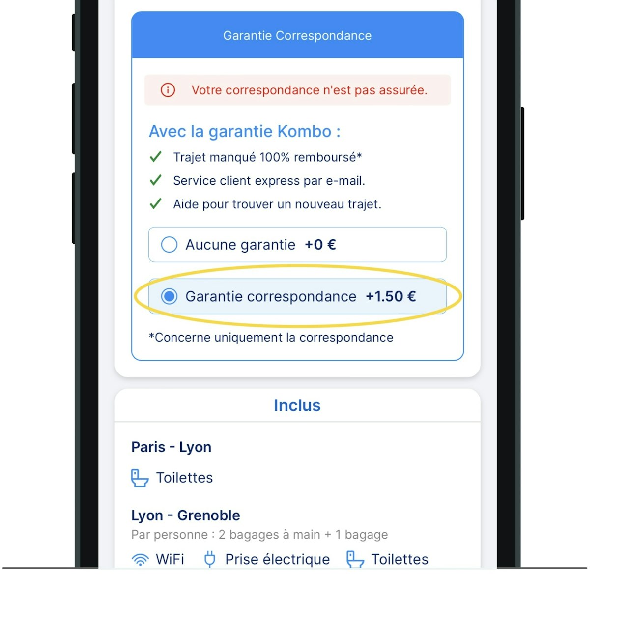 🚉 Les trajets combinés sont composés de plusieurs billets, et il y a donc une (ou plusieurs) correspondance où vous changerez de train, bus ou avion.