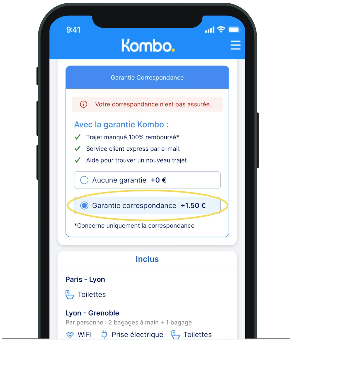 Notre moteur d'itinéraires permet de combiner des billets de façon à avoir des trajets qui ne seraient pas possibles autrement, mais attention, Kombo ne garantit cependant pas la correspondance.