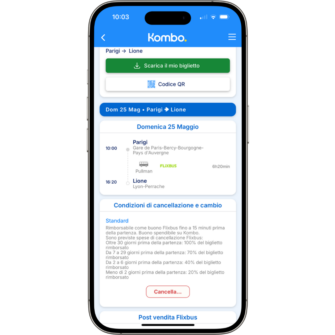 🚌 Per garantirti il miglior prezzo, i biglietti dell’autobus non sono modificabili, ma in genere sono annullabili. Come sempre, ti consigliamo di verificare le condizioni di annullamento, ma in generale puoi annullare il tuo viaggio: