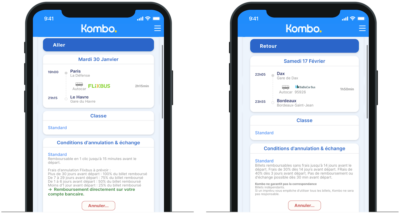 Fino a 30 minuti prima della partenza per i biglietti Blablabus (verranno applicate delle spese di annullamento)